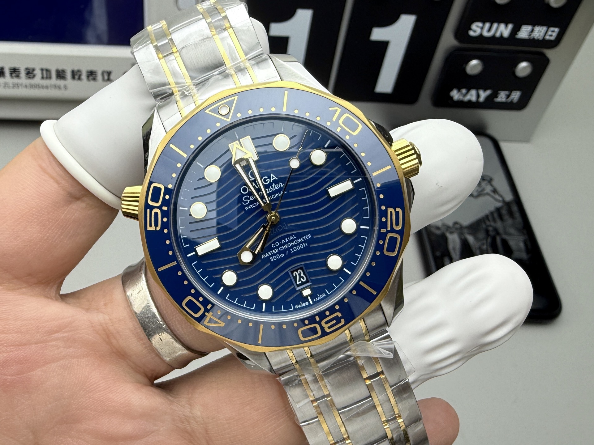 Omega Seamaster Diver 300m Yellow Gold & Steel Blue Dial 42mm Ref. 210.20.42.20.03.001
